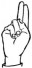 На ћирилици написано ДЕЈАН КЛЕМЕНОВИЋ састоји се из 15 слова [?]. Исписано ћириличном једноручном азбуком за глувонеме: